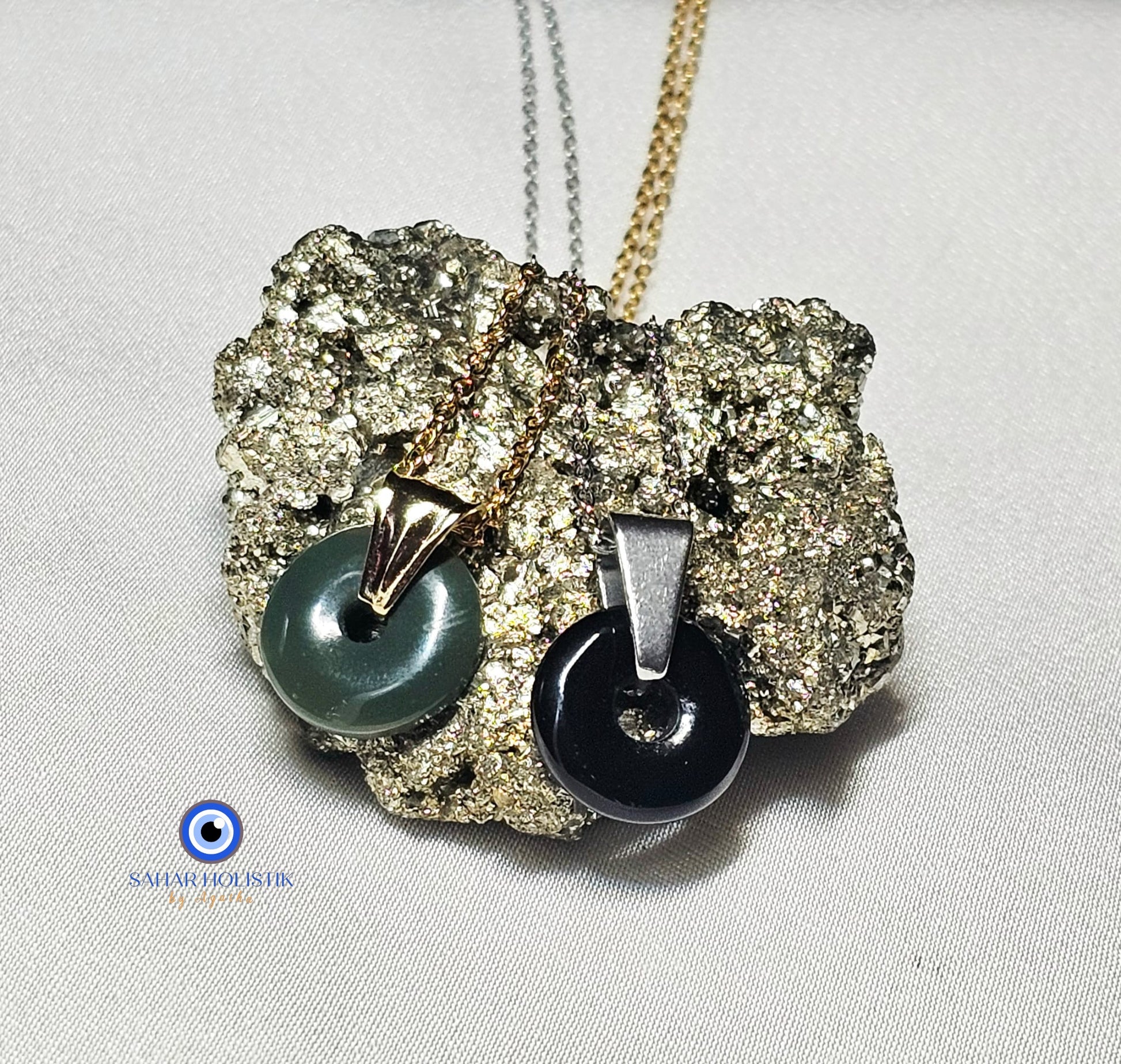 Colgante elegante en piedra de jade o onix con detalle y cadena Stainless Steel.